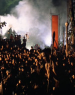 Per Francis Ford Coppola e la sua casa di produzione Zoetrope il film fu un’impresa titanica, l’opera di una vita che andò più volte vicina al fallimento. Girato nella giungla filippina a nord di Manila in due tornate (dal marzo al giugno del 1976 e nella prima metà dell’anno seguente, per quasi 240 giorni complessivi di lavorazione), fu costruito con frequenti ricorsi all’improvvisazione degli attori, Brando in primis. Dopo la sostituzione del protagonista designato Harvey Keitel con Martin Sheen (che fu colpito sul set da una crisi cardiaca) e i continui ricoveri di membri della troupe per via delle ondate di febbri malariche, Coppola subì enormi danni a scenografie e attrezzature in seguito a un tifone e registrò una crescita finale del costo produttivo dai 12 milioni di dollari previsti a oltre 30 milioni, restando poi in fase di montaggio per oltre un anno. Palma d’oro (ex aequo con Die Blechtrommel ‒ Il tamburo di latta, Volker Schlöndorff 1979) al Festival di Cannes del 1979 (dove Coppola lo presentò in una sneak preview con tre diversi finali), il film è stato ridistribuito nel 2001 con il titolo di Apocalypse Now Redux, con una durata di oltre cinquanta minuti in più dell’originale: il regista ha reintegrato diverse sequenze tagliate nella precedente versione, ricostruito con Walter Murch il suono in digitale e affidato il restauro del colore a Vittorio Storaro (entrambi premiati con l’Oscar per questo film), modificando nuovamente il finale (andandosene via dal Vietnam, Willard non dà più all’aviazione le coordinate del ‘regno’ di Kurtz, e dunque lo risparmia). Fin dal momento della sua uscita, la critica internazionale ha riconosciuto nella grandiosità di Apocalypse Now uno dei momenti essenziali del passaggio definitivo della struttura produttiva cinematografica statunitense dal vecchio sistema autarchico degli studios all’affermazione del sistema misto tra produzione indipendente e grande distribuzione definito New Hollywood, e in Coppola il regista-produttore più importante del decennio.