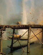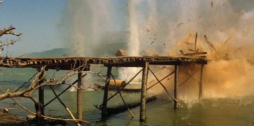 Il viaggio continua fino all’estremo avamposto sul fiume, al ponte di Do Lung, edificato a indicare il limite del fronte, nonché il confine con la Cambogia. Il gruppo della missione s’imbatte un ufficiale, in attesa da tre giorni per consegnare loro della posta, che li mette in guardia sui pericoli della zona. Il ponte di Do Lung rappresenta una metafora dell’ottusa ostinazione dei comandi militari, i quali, per motivi propagandistici, insistono nel difendere e mantenere inutilmente la propria posizione, sapendo che ogni notte il ponte viene spazzato via dal bombardamento dell’artiglieria nord-vietnamita. Mentre è in corso un ennesimo attacco, Willard e Lance si recano a terra avventurandosi tra le trincee, in un luogo dove la confusione regna sovrana e gli ufficiali in comando sono assenti, probabilmente uccisi. Il primo mitragliere che incontrano crede infatti che sia Willard il proprio comandante. Phillips cerca di convincere il capitano a desistere, paragonando la missione all’assurda ricostruzione di quel ponte, un’inutile e sanguinosa fatica di Sisifo. Ma Willard, con ostinazione febbrile, gli indica di proseguire.