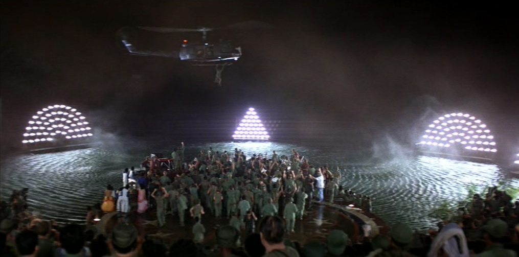L’impresa coppoliana (impresa tecnica, economica, estetica, esistenziale) è consistita, quindi, in una simulazione «globale» di una impresa bellica. Di questa non solo riproduce e interpreta esteticamente (spettacolarmente) le forme ma assume anche, sia pure su un altro piano, le finalità (conquista di un mercato, affermazione di una supremazia tecnologica e culturale, sfida) e le caratteristiche di imprevedibilità degli esiti, di avventura, di viaggio in una «terra straniera» (non a caso un Oriente che è luogo di conquista ma anche, come molto cinema americano recente e meno recente, luogo dello spirito, ultima frontiera, specchio deformante che restituisce, ora dilatate ora ribaltate in un incubo, le immagini del sogno americano).