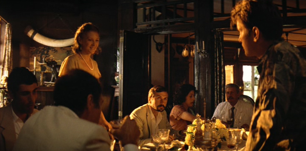 〈 Ampia sequenza aggiunta nella versione Redux: Dopo la morte del giovane Clean, Willard e il suo plotone raggiungono un avamposto francese in Cambogia, dove da decenni vive, isolata dal mondo, la famiglia DeMarais, stirpe di proprietari terrieri impiantatasi dai tempi dell’ Indocina francese, e che offre al gruppo asilo e degna sepoltura per l’ucciso. Willard viene invitato a cena da loro e ascolta una poesia in francese recitata da due bambini (interpretati dai figli del regista, Roman e Gio Coppola). A tavola, i membri della famiglia espongono le loro teorie sul colonialismo, in particolare il capofamiglia Hubert DeMarais. Alla fine della cena, Willard si intrattiene a fumare una pipa di oppio con Roxanne Serraut-DeMarais, un’attraente e intraprendente vedova, con cui poi trascorre la notte. 〉