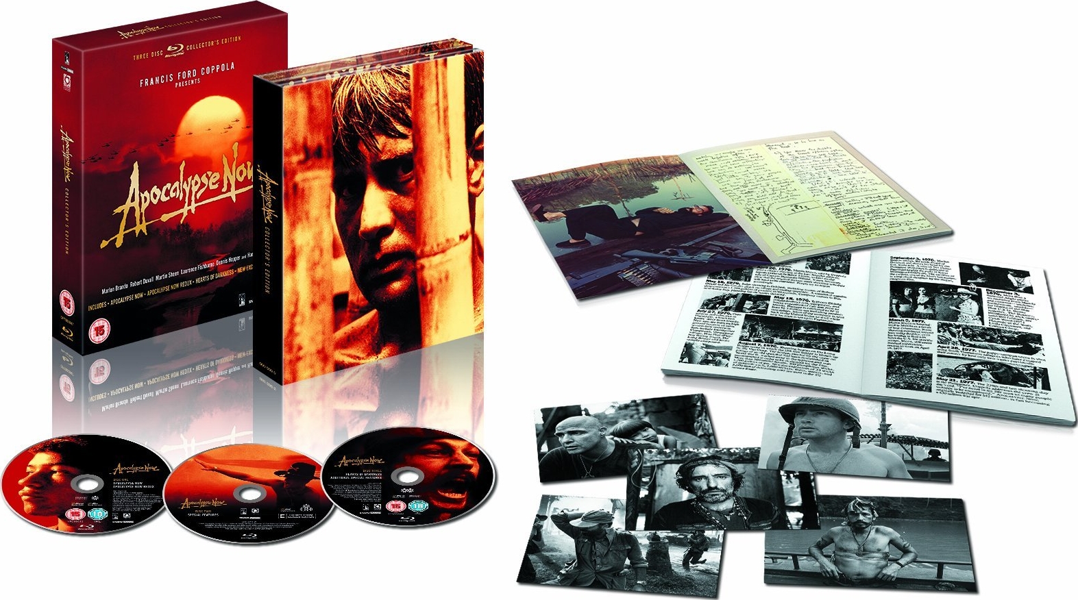 L’edizione italiana in Blu-ray del 2011 è uscita in due versioni: una a due dischi, con contenuti aggiuntivi, e in questa Collector’s Edition a tre dischi, comprendente ulteriori extra oltre che un booklet, la brochure originale del 1979 e cinque cartoline con foto di scena in bianco e nero del film. Il supporto che contiene i film è di tipo a doppio strato, occupato per 41,3 GB e contenente Apocalypse Now (1979) e Apocalypse Now Redux (2001), rispettivamente di 147 e 196 minuti di durata, suddivisi entrambi in 19 scene, con il commento audio del regista. I film sono rimasterizzati in Alta Definizione con la supervisione di Francis Ford Coppola, presentati nel formato cinematografico originale (2.35:1). L’audio italiano è presentato in DTS-HD Master Audio Stereo Surround, quello originale è un DTS-HD Master Audio a sei canali (unica modalità disponibile per la versione Redux, poiché l’inserimento dell’italiano avrebbe richiesto un improbabile ridoppiaggio di tutto il film).