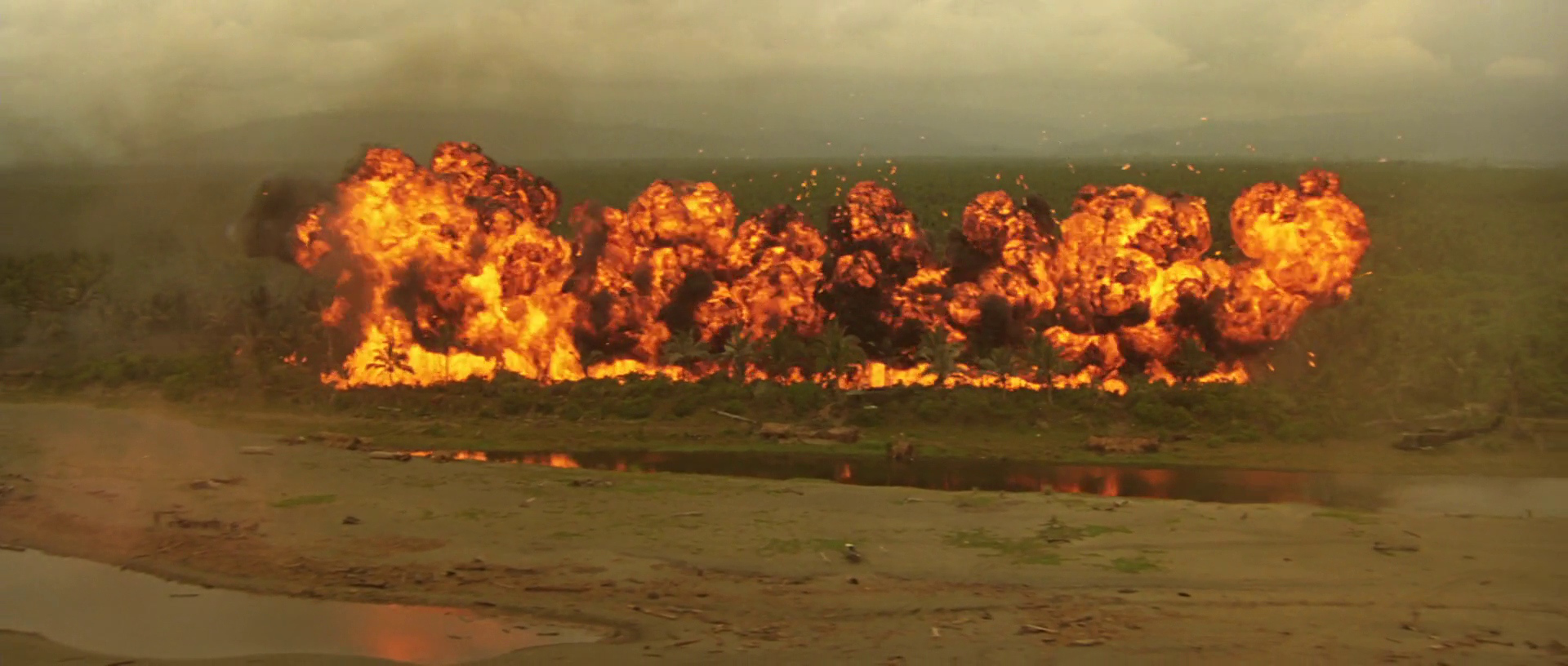 Il finale della prima versione di Apocalypse Now si conclude con una ripresa notturna di bombardamenti al napalm durante i titoli di coda, mentre le fiamme divampano verso il cielo. Willard ha abbandonato il posto e ha chiamato, attraverso la radio, l’aviazione (il codice segreto è «Onnipotente») per fare bombardare il villaggio.