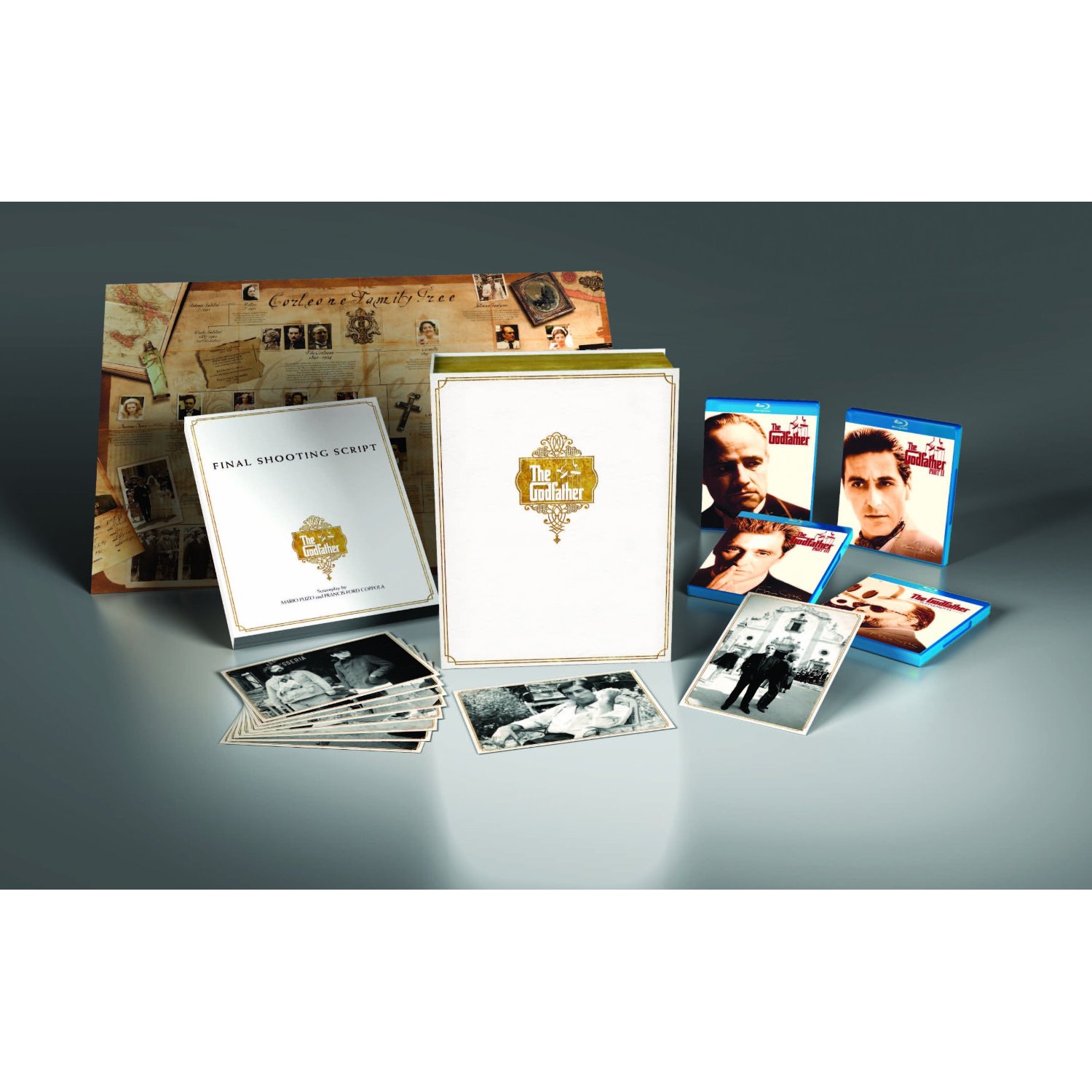 Edizione “Collezione 40° Anniversario” (2012) in Blu-ray della Trilogia del Padrino di Francis Ford Coppola. Il box contiene il cofanetto con tre dischi delle edizioni restaurate in digitale (con nuove tracce audio Digital Surround 5.1 e con il commento del regista) di The Godfather (1972), The Godfather, Part II (1974), The Godfather, Part III (1990) insieme a un disco con oltre 240 minuti di Contenuti speciali; la riproduzione in anastatica della sceneggiatura originale (Final Shooting Script) di The Godfather di Mario Puzo e Francis Ford Coppola; una busta contenente 10 cards virate color seppia di stills set dei tre film; il poster dell’albero genealogico della Famiglia Corleone.