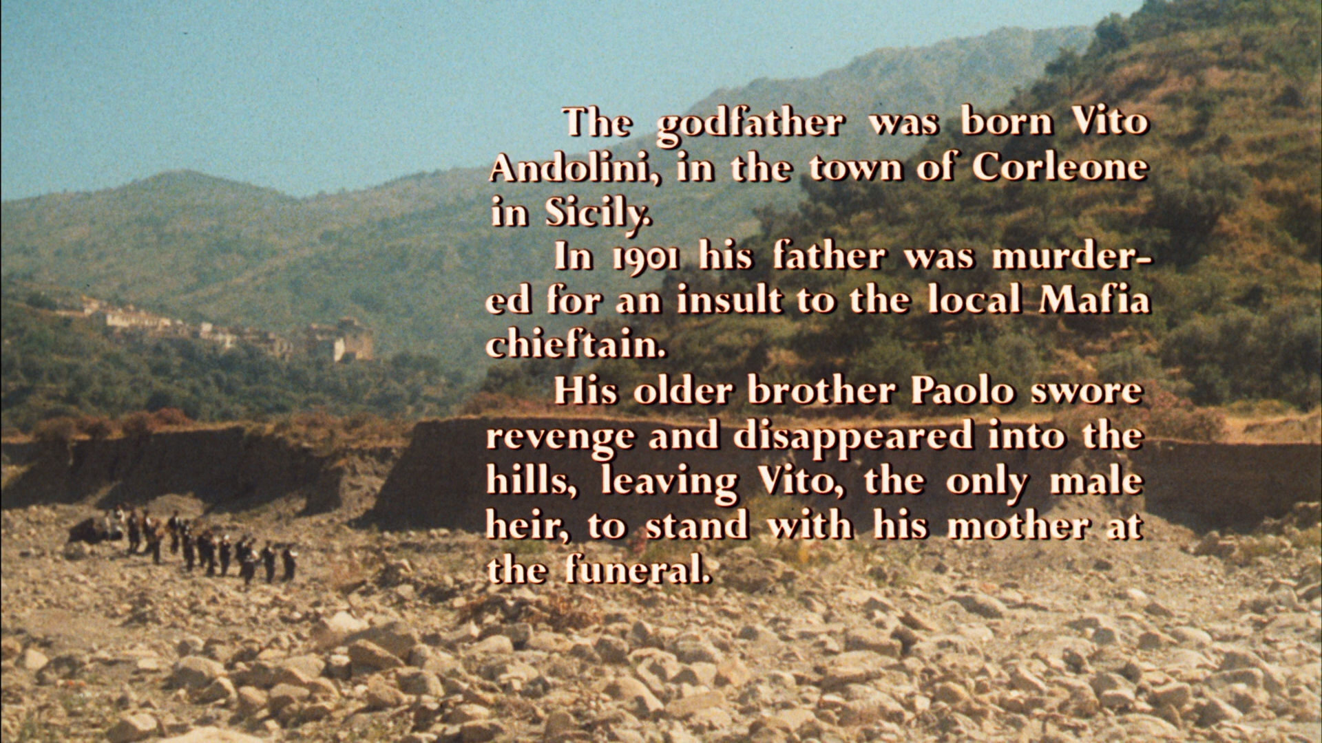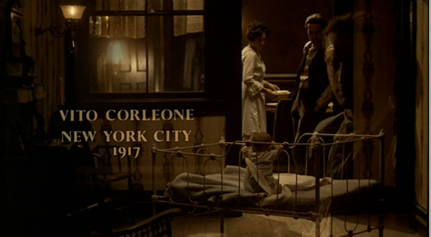 In apertura assistiamo alle vicissitudini di Vito bambino, nel 1901 in Sicilia, quando portava ancora il cognome Andolini e abitava a Corleone. Tutti i suoi parenti sono stati uccisi in una faida mafiosa. Solamente la madre viene risparmiata fino a quando si reca con lui a implorare, di fronte al latifondista e capomafia locale don Ciccio, pietà per il suo bambino. Comprendendo l’inutilità della propria richiesta di clemenza, la donna minaccia con un coltello don Ciccio e viene uccisa. Vito riesce a scappare e, con l’aiuto di alcuni parenti, viene spedito a New York. Quando viene visitato, durante il rituale burocratico di accettazione alla frontiera, gli viene attribuito il cognome di Corleone (lo stesso del suo luogo d’origine) ed è rinchiuso in un sanatorio per una quarantena dovuta alla sua tubercolosi.