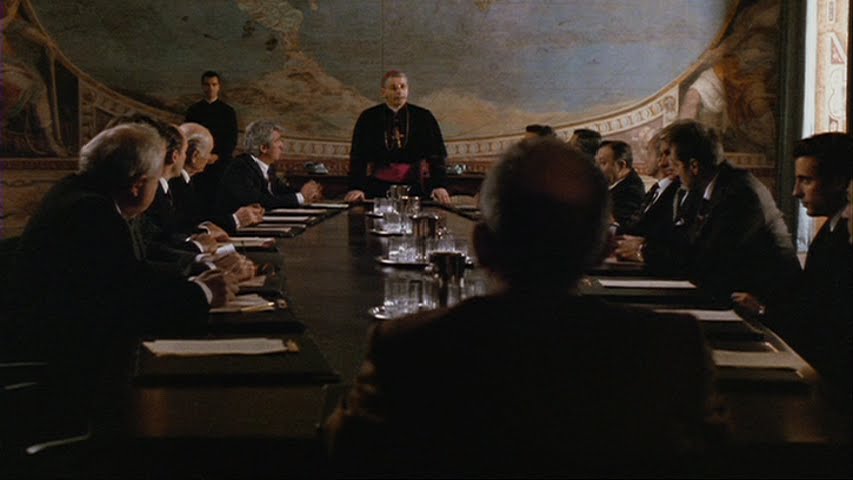 Forte del proprio titolo onorifico conferitogli da Papa Paolo VI in virtù delle sue opere benefiche, Michael investe seicento milioni di dollari nella Banca Vaticana, per entrare nella Internazionale Immobiliare e assumerne il controllo. La società è controllata dal mellifluo Arcivescovo Gilday che gestisce una rete di affari assai lucrosi. Michael si reca in Vaticano a incontrare Gilday, al quale l’investimento dei Corleone è utile a evitare il rischio di una bancarotta fraudolenta causata dalle manovre di un gruppo di avidi uomini d’affari cattolici, guidati dal potente Licio Lucchesi, un influente uomo politico italiano che ha rapporti con i vertici italiani di Cosa Nostra. L’onorevole della maggioranza al governo controlla pure, attraverso il ricatto, il corrotto banchiere svizzero Frederich Keinszig.
