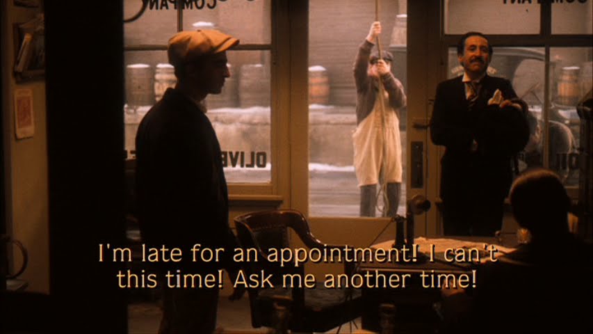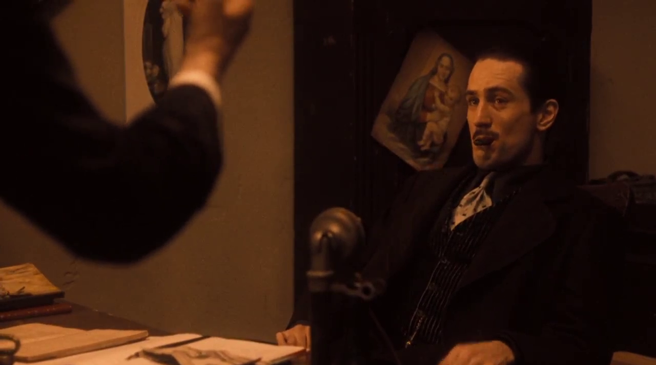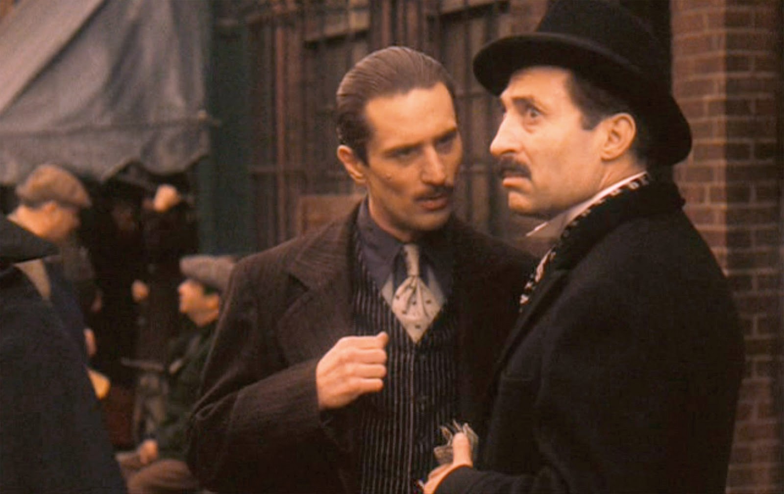 E così un flashback ci riporta all’epoca dell’affermazione di Vito Corleone, boss di Little Italy, a cui i deboli si rivolgono per essere difesi. E così Vito affronta il caso di un’anziana signora che rischia lo sfratto del padrone di casa, il signor Roberto. Questi inizialmente affronta con sprezzo la richiesta di accomodamento propostagli da Vito, poi quando apprende che il protettore della sua inquilina è colui che ha fatto fuori Fanucci va a trovarlo conciliante, offrendo gratuitamente l’affitto del proprio appartamento. Ormai la leggenda di “don” Vito si è diffusa e lui può tranquillamente avviare la propria attività di copertura attraverso la ditta “Genco Oil” di importazione ed esportazione alimentare, fondata con i sodali Clemenza, Tessio e Genco.