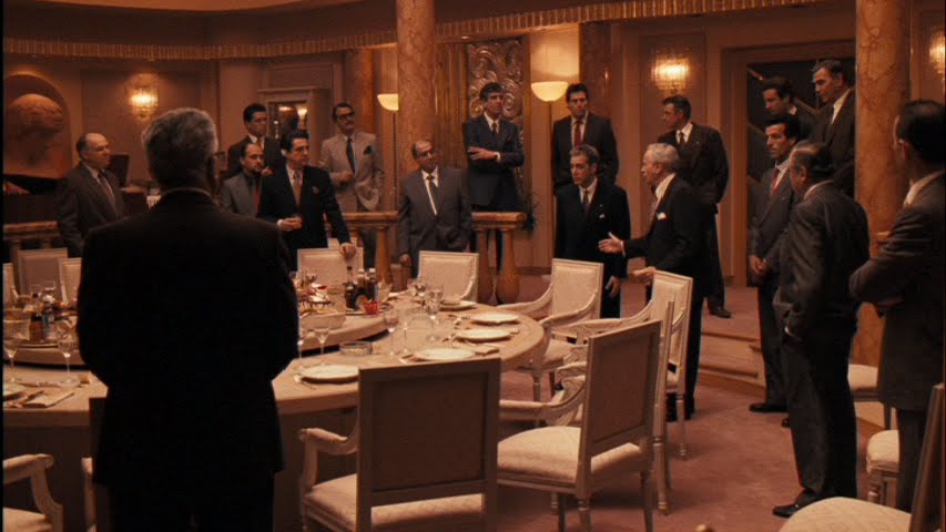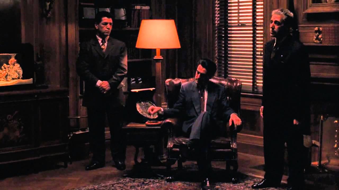 E’ il 1954. Durante il funerale del “padrino”, i boss delle famiglie mafiose, attraverso la mediazione di don Barzini e di Tessio che è un capofamiglia amico del defunto “don”, propongono a Michael un nuovo accordo per la spartizione del potere in città. Il nuovo capo dei Corleone, però, fa tesoro dei consigli del padre che, prima di morire, nell’esprimergli il rimpianto di non aver potuto fare di lui un “pezzo da novanta” come giudice o senatore, lo ha avvertito della pericolosa deriva delle famiglie intenzionate a liquidare il potere dei Corleone. Michael precede spietatamente ogni complotto e, durante il battesimo del figlio di Connie che lo vede nel ruolo di padrino, decide di chiudere tutti i conti in sospeso. Fa uccidere Tessio, con la mediazione del “consigliori” Tom, e manda i suoi killer ( tra cui Clemenza e Al Neri) ad eliminare Tattaglia, Barzini, Moe Greene di Las Vegas (colpevole di aver umiliato pubblicamente il fratello Fredo) e gli altri boss rivali. A ritorno dalla cerimonia del battesimo, il nuovo “don” si vendica pure del cognato Carlo, facendolo strangolare all’interno di un auto da Clemenza, dopo avergli strappato la confessione del tradimento ai danni del fratello Sonny. La famiglia Corleone, quindi, ha vinto la guerra: una volta riconquistato il potere su tutta la città, può prepararsi al trasferimento a Reno e a Las Vegas, là dove il gioco d’azzardo, che da tempo rappresenta l’impresa privilegiata della famiglia, si sta espandendo in maniera apparentemente legale.