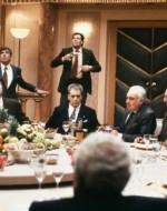 Per evitare a Michael una morte ormai sicura, don Vito giura di non chiedere vendetta per il suo Sonny, il cui cadavere sfigurato viene affidato alle cure di restyling estetico dell’impresario funebre Bonasera, e propone un incontro con i capi delle principali famiglie mafiose di New York per raggiungere un compromesso e stabilire una tregua. Nel corso del “meeting”, Vito Corleone concede ai boss il proprio appoggio, assieme alla protezione dei giudici e dei politici da lui corrotti, al traffico di droga. Il patto prevede l’assicurazione sull’incolumità di Michael che così può tornare negli Stati Uniti e prendere la guida della famiglia .