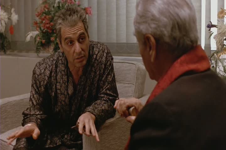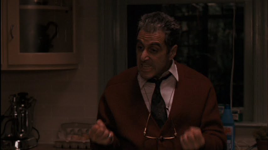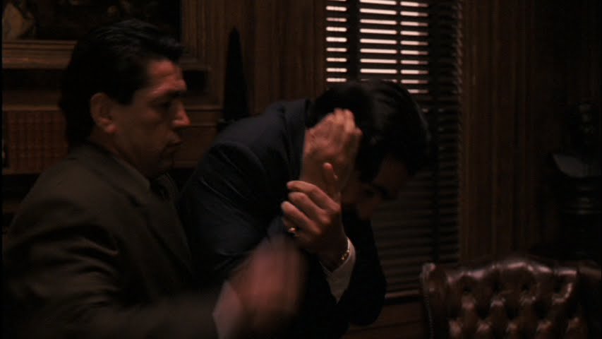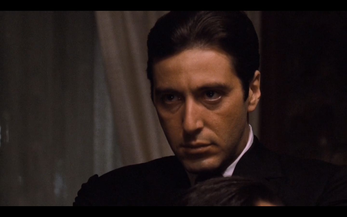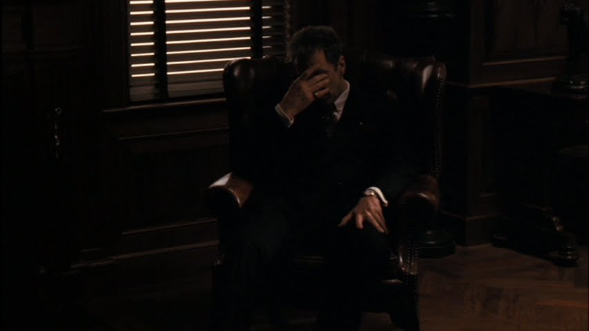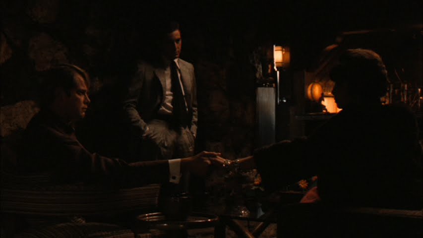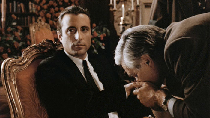 Già sconvolta dalle notizie della mattanza mafiosa, Kay assiste allo sfogo di Connie che accusa Michael di averle ucciso il marito. Michael si ribella alle richieste di chiarimento della moglie ma poi le concede un’unica e definitiva replica, negando spudoratamente ogni sua responsabilità su quei fatti. Kay sembra però comprendere la verità quando Michael riceve, nello studio che era di don Vito, i capiregime che s’inchinano davanti a lui baciandogli l’anello come segno di devozione: d’ora in poi lei sarà la moglie del nuovo “padrino”.