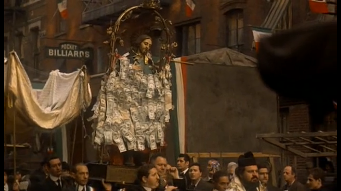 Si torna ai tempi dell’ascesa del padre che, divenuto benestante a Little Italy, prova a difendersi con arguzia dal solito Fanucci, intenzionato a imporre la tangente alla piccola impresa criminale sua e dei soci Clemenza e Tessio. Se questi sono pronti a pagare il “pizzo”, Vito oppone resistenza promettendo di risolvere a modo suo la questione: prima tenta inutilmente di convincere Fanucci con l’offerta “che non si può rifiutare” di un accordo e poi, durante la processione del santo patrono nel quartiere, tende al “malamente” un agguato sparandogli davanti alla porta di casa. Sarà questa impresa a farlo diventare una leggenda a Little Italy e ad alimentare il benessere suo, della moglie e dei figli, al cui ultimo ha dato per nome Michele.