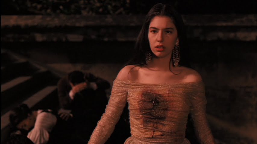Al Teatro Massimo, nel frattempo, Mosca ha eliminato le gemelle guardie del corpo di Michael e si prepara a centrarlo col suo fucile quando questi si alza, richiamato da Vincent, mentre la rappresentazione è ancora in corso. L’attentato non riesce e, quando scattano gli applausi che sanciscono l’esito trionfale del debutto in palcoscenico di Anthony, Connie nota che don Altobello ha ingurgitato i suoi cannoli ed è morto avvelenato. Sulla scalinata del teatro palermitano, a spettacolo concluso, si consuma l’ultimo, fatale atto della saga dei Corleone: Mosca riesce a infiltrarsi tra gli spettatori all’uscita e spara alcuni colpi di pistola verso Michael. Prontamente Vincent lo fulmina, ma è troppo tardi. Uno dei colpi ha centrato in pieno petto Mary che si accascia priva di vita. La scena che segue impressiona tutti: riverso sul cadavere ancora caldo della figlia, Michael urla straziato tutto il suo dolore.