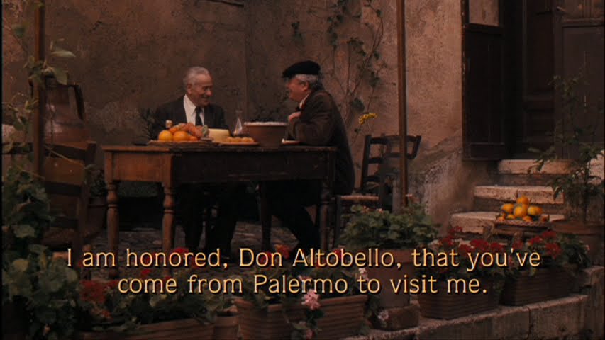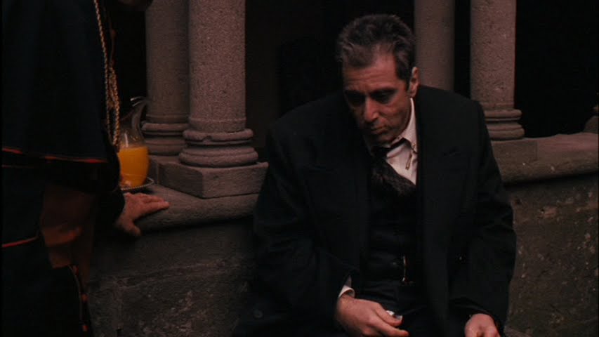 La saga dei Corleone ha per epilogo, sulle note dell’ouverture della Cavalleria rusticana, il flashback dei momenti più felici di Michael, le brevi sequenze dei suoi balli con le donne che ha amato nella sua vita: Apollonia, Kay e la figlia Mary. L’ultima scena lo mostra incanutito, anni dopo il tragico evento, seduto in stato di abbandono nel cortile di una villa in Sicilia dove si è rifugiato. I rimpianti e i rimorsi sono la nemesi che lo ha divorato. E il figlio di Vito muore, come il padre, in assoluta solitudine insieme all’utopia criminale della famiglia Corleone che si è dissolta.