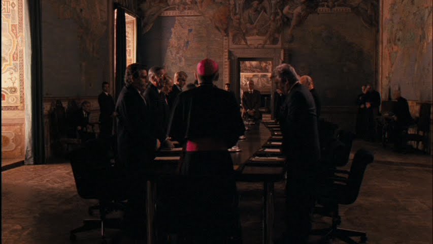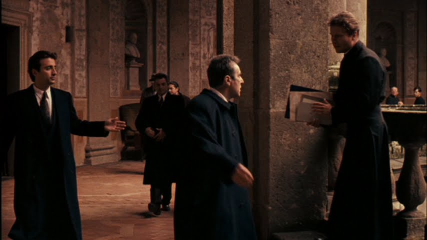 Mentre il sicario Mosca si prepara ad attentare alla vita di Michael sparandogli con un fucile di precisione, in Vaticano Lucchesi e l’Arcivescovo Gilday fanno avvelenare il té di Papa Lamberto che viene rinvenuto cadavere nel proprio letto. Vincent ha però mandato dei sicari a eliminare tutti i nemici dei Corleone: il banchiere Keinszig viene prima soffocato e poi impiccato a un ponte, lo stesso Gilday viene freddato da Al Neri, mentre l’ormai anziano mafioso Calò (antico sodale di Michael) uccide Lucchesi conficcandogli i suoi stessi occhiali nel collo dopo avergli sussurrato all’orecchio il celebre aforisma andreottiano sul “potere che logora chi non ce l’ha”.