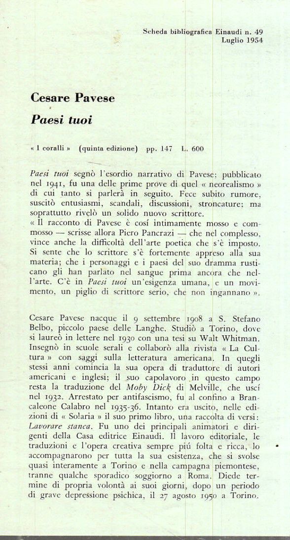Paesi tuoi di Cesare Pavese – Prima edizione Einaudi 1941